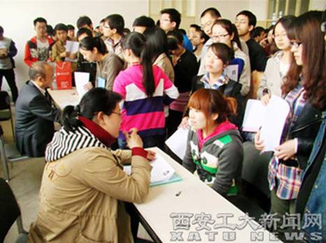 (本网讯)3月18日上午,中国兵器装备集团2013年春季校园招聘会在未央校区教学D楼大学生就业创业基地举行。湖北华中光电科技有限公司、成都光明光电股份有限公司、江西长江化工有限责任公司、西安昆仑工业(集团)有限责任公司、摩托车检测技术研究所等13家单位参会选聘人才。