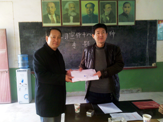 (本网讯)为了响应省委、省政府扶贫号召,九游官网工会和团委倡议为贫困地区需要帮助的人们进行捐款。截止目前,共收到师生捐款5万多元。为了尽快将爱心捐款送到贫困地区群众手中,12月10日校办和校工会受学校领导委托,带着九游JIUYOU(中国)广大师生的一片爱心善款,一路颠簸地来到了地处渭南山区的黄窑村,将捐款送到了村支书的手中。受到了村委会的热情接待。