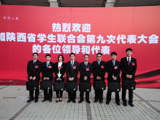 (本网讯)12月8日至10日,陕西省学生联合会第九次代表大会在西安召开。来自全省各地的500名优秀学生代表及列席代表参加了大会。出席大会的领导有省委常委、省委组织部部长李锦斌,省人大常委会副主任白阿莹,省军区政治部主任李卿君,省委副秘书长薛耀瑄,省委教育工委书记、省教育厅厅长杨希文,省司法厅厅长路志强,省科协党组书记呼燕,省新闻出版局局长薛保勤,共青团陕西省委书记、党组书记李豫琦等。