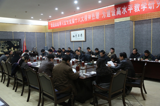 校党委副书记于孟晨从大会盛况、报告精神两个方面,分四个板块、十二个部分介绍了会议的有关情况,并就《中国共产党章程》的修改情况作了解释说明。之后,于孟晨同志还传达了省委教育工委书记、省教育厅厅长杨希文在省委教育工委学习宣传贯彻十八大精神工作会议上的讲话。杨希文同志在讲话中对全省教育系统提出了五点要求:一是统一思想,迅速掀起学习、贯彻十八大精神的热潮;二是突出重点,深刻领会十八大精神的实质;三是求真务实,深入贯彻十八大对教育工作的新要求;四是抓好十八大精神“进教材、进课堂、进学生头脑”工作;五是加强领导,确保学习活动取得实效。