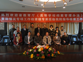 张君安院长代表全体师生对专家组的到来表示热切的欢迎,指出:档案工作对于形成大学精神,向社会展示高等教育风貌具有重要意义,我院高度重视学院的档案管理工作,不断探讨档案管理工作的有效途径,大胆创新将档案工作纳入各部门考核体系,并在高陵新校区建设规划里特设专项校史档案馆,作为学生爱国主义教育基地,引导学生融入学校历史。希望检查组专家给予中肯点评,帮助我院档案工作再上新台阶。