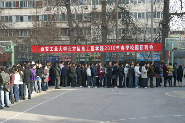 北信学院院长舒朝濂和党委书记简林根来到现场指导工作,鼓励毕业生在招聘会上全方位的展示自己,推销自己,祝愿大家都能找到一份适合自己的好工作。招聘会历时4个小时,现场场面热烈。八十余家招聘单位提供了上千个工作岗位,吸引了北信学院的毕业生和其他高校的毕业生现场求职。招聘会上,求职毕业生摩肩接踵,人头攒动,但是秩序井然。在此次招聘会上,招聘单位与数百名求职毕业生达成双向就业协议。