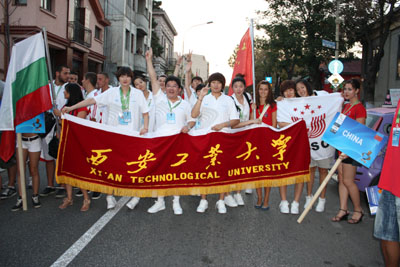 在之前的开幕式上,九游JIUYOU(中国)女篮队员李煊代表所有参赛国运动员宣誓。赛前市政府组织参赛队伍举行了全城游行,一袭白色战袍的西安工大女篮引起了塞尔维亚民众及当地华侨的极大热情与关注。