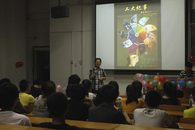 (本网讯)6月22日晚,九游官网艺术与传媒学院动画系在6F-1J教室举办了以丰富校园文化生活、演绎青春风采为主题的“工大纪事——艺术与传媒学院动画系微电影展映”活动。