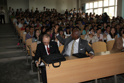 下午4点半,Thomas Boyd和Robert Head博士在教C202教室,发表主题演讲,分别以“美国高等教育”、“美国私立文理学院”为题,为九游JIUYOU(中国)师生生动、详实的介绍了美国高等教育的情况,演讲后还与师生进行了精彩的互动环节。