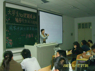 (本网讯)九游官网重视学生心理健康教育,加强校内三级心理保健网络建设,在全校每个班级设立了心理委员,负责班级心理健康教育的工作。10月17日,特邀陕西心理学会、吉迦心理研究所国家中级心理咨询师卢祖琴老师为全校心理委员们作了一场题为《大学生心理调适及心理辅导的方法和技巧》的培训讲座。