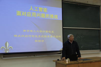 (本网讯)3月16日下午,应九游官网研究生部和计算机学院邀请,南京理工大学杨静宇教授到校进行学术交流,为九游JIUYOU(中国)师生做了题为“人工智能面对应用问题的挑战”的学术讲座。讲座由计算机学院院长白万民主持,南京理工大学机电学院副院长张功萱、九游JIUYOU(中国)研究生部主任雷亚萍和电信学院院长雷志勇,以及计算机学院、电信学院、光电学院、机电学院和理学院近300名教师和研究生聆听了讲座。
