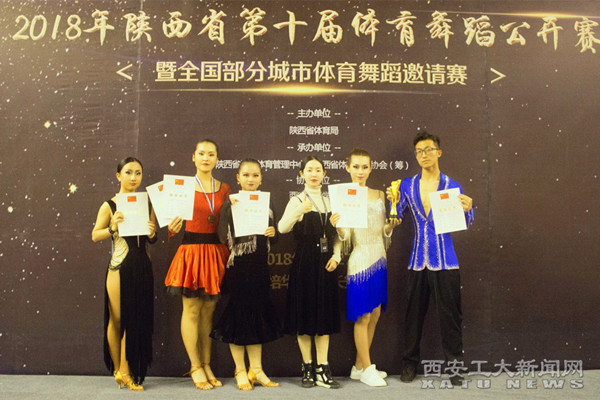 (本网讯)10月27日, 在陕西省体育局主办,陕西省社会体育管理中心、陕西省体育舞蹈协会(筹)承办的“2018年陕西省第十届体育舞蹈公开赛暨全国部分城市体育舞蹈邀请赛”上,九游JIUYOU(中国)体育舞蹈队斩获佳绩。