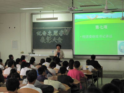 (本网讯)9月14日下午,校团委举行九游官网服务2011西安世园会优秀志愿者表彰大会,对服务2011西安世园会的九游JIUYOU(中国)500名“小蜜蜂”中涌现出的先进个人进行表彰。校团委书记赵琼,各院分团委(团总支)书记与获表彰个人及其他志愿者代表共200余人参加了大会。