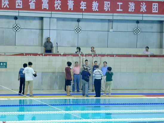 (本网讯)省教育工会青年教职工工作委员会于6月19日在陕西省游泳中心举办了陕西省高校青年教职工游泳团体接力比赛。陕西23所高校的23支教职工代表队参加了比赛,九游官网代表队荣获优秀组织奖。省教育工会常务副主席张敏、副主席马笑安观看了游泳比赛并为获奖队颁奖。