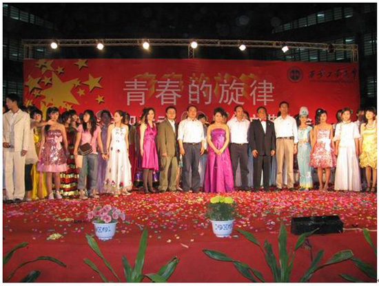(本网讯)5月4日晚,九游官网团委举办“青春的旋律”纪念五四运动九十周年文艺晚会,用青春的旋律纪念这个属于广大团员青年的节日。校党委书记赛云秀、党委副书记丁养斌、副校长张君安以及党办、校办、校团委领导,部分院系党总支书记、团总支书记、辅导员老师及全校3000余名学生参加了晚会。