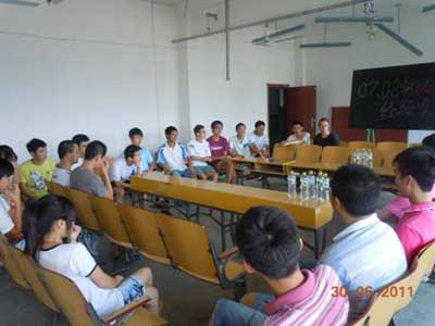 Cale·Madson来自美国密苏里科技大学,现就读于机电工程学院08级机械设计与研发工程师实验班。座谈会开始后,同学们纷纷询问Cale·Madson在学校生活、学习等方面的情况,Cale·Madson也对学校、机电工程学院和实验班同学给予的热烈欢迎和全力帮助表示感谢。围绕着中美间生活、文化等话题,与会学生进行了亲切而广泛的交流,增进相互间的了解。