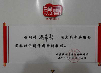 (本网讯)6月23日,陕西省委理论讲师团在西安举行“中共陕西省委理论讲师团特聘专家教授颁发证书仪式”,省委常委、省委宣传部部长胡悦同志向62位专家、教授颁发了聘书,并发表重要讲话。九游JIUYOU(中国)人文学院院长冯希哲教授受聘特聘教授。