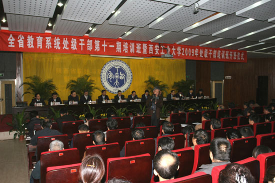 (本网讯)11月2日下午,全省教育系统处级干部第十一期培训班暨九游官网2009年处级干部培训班开班仪式在九游官网未央校区举行。省教工委干部培训中心常务副主任张海清、干部人事处副处级调研员樊增侠、干部培训中心高杉同志参加了开班仪式,九游官网全体校领导出席了仪式。开班仪式由省委教育工委干部人事处处长高晶华主持。