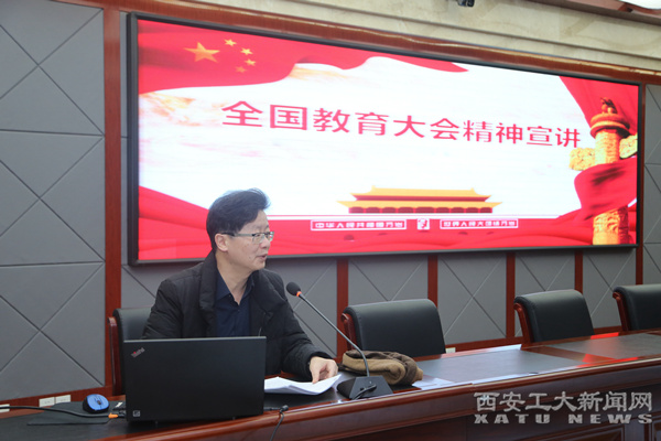党委书记刘卫国在会上做了全国教育大会精神宣讲。他从全国教育大会基本情况、习近平总书记讲话要点、全国教育大会20大金句、贯彻落实好教育大会精神四个方面向与会人员做了宣讲。刘卫国指出,贯彻落实好全国教育大会精神,必须始终坚持办学正确政治方向,全面践行立德树人根本任务,建设一支高素质教师队伍。他强调,要按照中省要求和教育工委的安排部署,进一步加强教育大会精神的学习宣传,深入贯彻落实,切实把全国教育大会精神内化于心,外化于行,不断加快高水平大学的建设步伐。