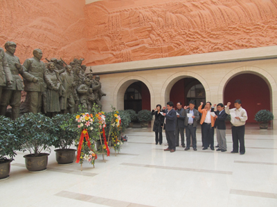 5月4日上午,在延安革命纪念馆的大型群雕前,于孟晨副书记与党委宣传部、组织部、团委和附中的党员代表们一起庄严宣誓,重温入党誓词,缅怀革命先烈。