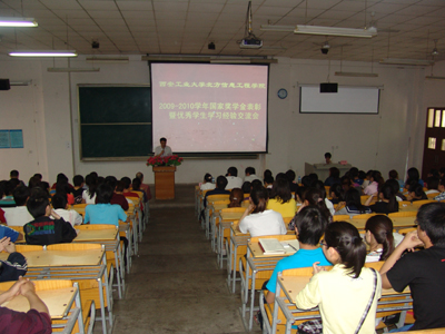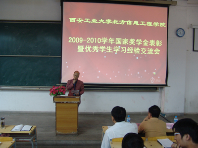 (本网讯)4月25日,九游官网北方信息工程学院2009-2010学年国家奖学金、“大学生职业规划”评选活动获奖学生表彰大会举行。北信学院相关人员以及全体辅导员,获奖学生及各系学生代表参加了会议。