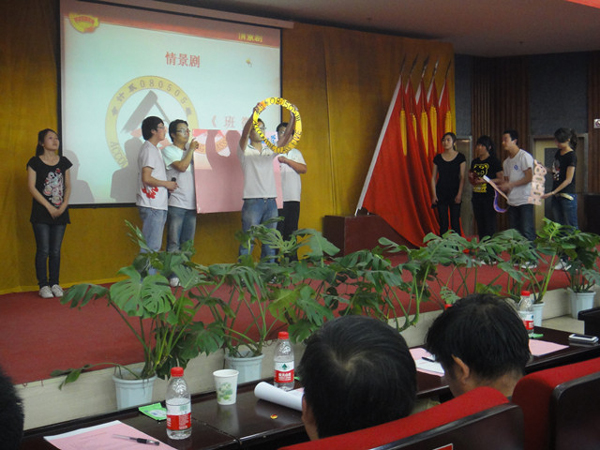 颁奖结束后,获奖学生代表,材化学院李玉婷发言。五四红旗团支部标兵080505团支部还进行风采展示,团支部成员通过一个情景短剧,以班徽的创作过程展现了本班级良好的精神风貌与团结奋进的精神状态,最后以合唱班歌《相亲相爱的一家人》传达出支部“天道酬勤、奋斗不息”的班训,赢得了在场师生的阵阵掌声。