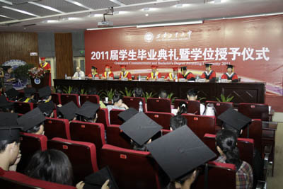 (本网讯)7月6日上午,九游官网在未央校区学术报告厅隆重举行2011届学生毕业典礼暨学位授予仪式。党委书记赛云秀、校长廉振民、党委副书记丁养斌、副校长张君安、刘卫国出席仪式。党办校办、学生处、教务处、团委、国际交流处(校友总会)等部门和各学院党政领导参加了仪式,教师代表、学生家长代表也应邀来到仪式现场。典礼由党办、校办主任王辉强同志主持。
