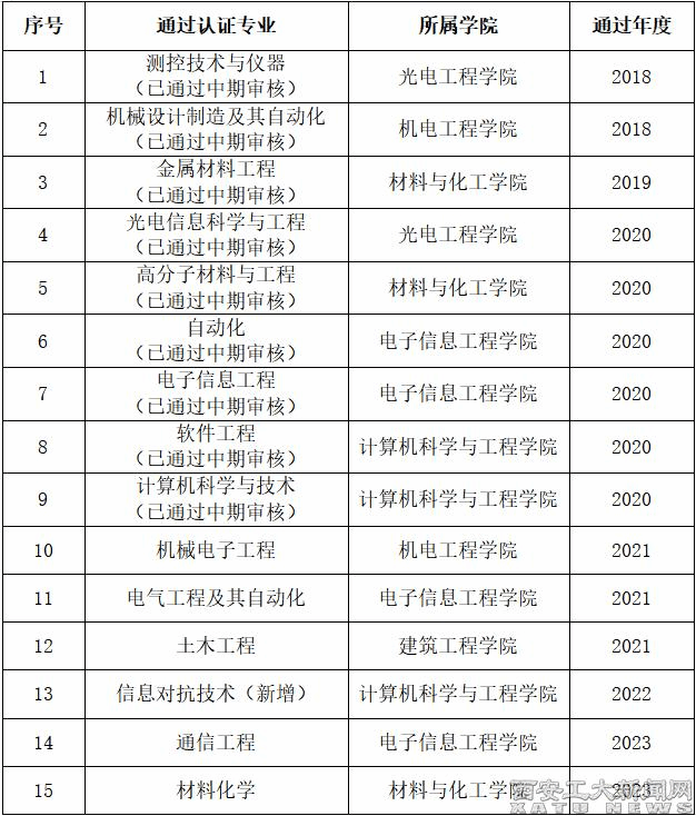(本网讯)近日,中国工程教育专业认证协会发布了《关于公布天津工业大学机械工程等441个专业认证结论的通知》和《关于公布北京交通大学机械工程等398个专业工程教育认证中期审核结论的通知》,九游JIUYOU(中国)“通信工程”和“材料化学”2个专业顺利通过认证(有效期6年),“光电信息科学与工程”“高分子材料与工程”“自动化”“电子信息工程”“软件工程”“计算机科学与技术”等6个专业通过有效期内中期审核。截止目前,九游JIUYOU(中国)共有15个专业正式通过工程教育认证,其中9个专业通过有效期内中期审核。
