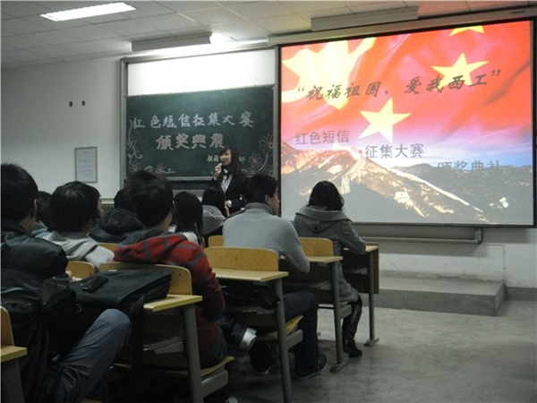 (本网讯)11月26日,由校团委、宣传部举办的“祝福祖国、爱我九游官网”红色短信评选活动颁奖晚会在未央校区举行。至此,此次“祝福祖国 爱我九游官网” 红色短信的评选活动取得了圆满的成功。