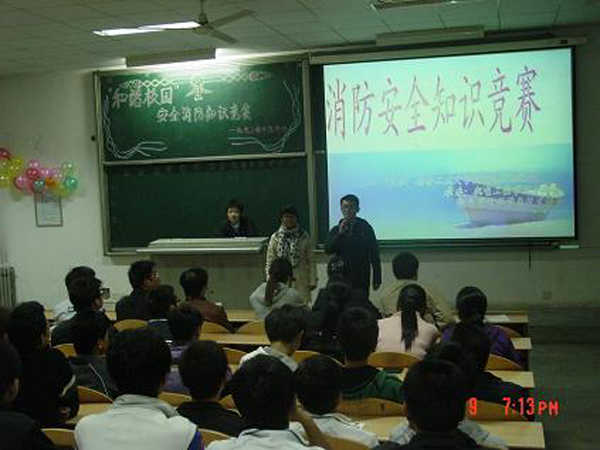 11月9日晚,由校团委、保卫处主办,机电工程学院分团委、科学与技术协会承办的第二十届“11.9”消防日大学生消防安全知识竞赛在教学C楼101教室举行,共有15支代表队参赛。竞赛分必答、自选题目、默契配合、互动环节、情景模拟、抢答和风险题七个部分,每队参赛队员积极抢答和踊跃上台回答问题。此次消防安全知识竞赛活动集知识性、趣味性、娱乐性为一体,起到了很好的宣传效果。