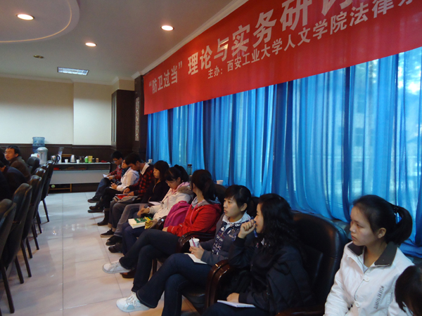 研讨会以近期发生的社会热点案件即东莞林振祥案件以及陕西肖昌勇案件为契机,围绕防卫过当的理论与实务问题展开了热烈的探讨。陕西省高院刑一厅副厅长刘仲屹法官首先对关于防卫过当与否的认定、防卫过当行为主观心态、防卫过当行为罪名的确定以及量刑的把握等相关问题进行了梳理与澄清,并指出防卫过当在司法认定中应该注意的问题;同时,刘法官还以高院不同时期的判决为据,指出法院系统十年来在保护公民正当防卫权方面做出的努力。在激烈的研讨中形成三个焦点问题:一是如何具体判断、认定防卫行为是否明显超过必要限度造成重大损害,二是正当防卫与防卫过当的关系问题,三是关于特殊防卫权成立条件的准确理解与司法适用问题。与会嘉宾不仅旁征博引,比较中外立法与理论差异,更是对我国的司法实务与理论的共生互动问题给予了热切的关注,分析法理、剖析案例、反思立法,思索法律规定与社会现实、司法裁决与舆情民意的平衡与和谐,对防卫行为正当与过当、合法与非法的界定以及刑事责任的承担等理论与实务问题深入挖掘解剖。陕西高院刑一厅副厅长刘仲屹法官、马云法官、陕西律师协会刑事辩护委员会耿民主任律师、陕西永嘉信律师事务所李秀梅律师、陕西普迈律师事务所田宏伟律师、澳门日报特约记者张伯庆先生、西北政法大学刑事法学院副教授陈京春博士、陕西科技大学法律系范连玉副教授、陈敏博士等专家学者均发表了精辟的见解,九游JIUYOU(中国)法律系教师李金玉、王宏斌、郑淑霞、张玲艳等表达了个人独到的观点,会议气氛热烈活跃、思想火花四溅,掌声迭起。