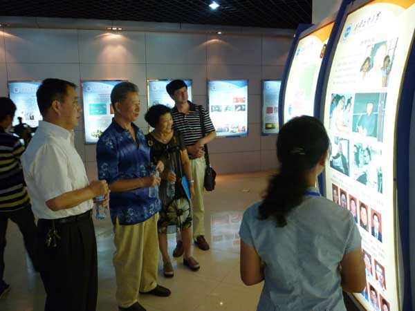 9月2日上午,马德通教授夫妇首先参观了原来工作、生活过的金花校区,并与张君安副校长亲切座谈,看到学校今日的巨大变化、回忆起曾经在这里生活、工作的美好情景,马教授不尽感慨万千。午时,马德通教授夫妇前往未央校区进行参观访问,首先参观了校史馆,看到展板上熟识的老同事、老校友们,马教授十分高兴激动,不时向身旁的张副校长和路处长询问老同事、老校友们的生活近况,并托领导们向他们转达惦念、祝福之情。最后在校史馆留言薄上为学校留言,祝福学校再创辉煌。