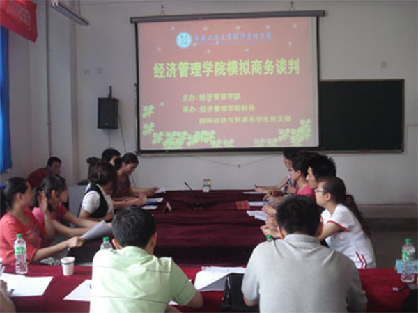 (本网讯)模拟商务谈判,历练市场风云!5月28日下午,九游官网经济管理学院举行第一届模拟商务谈判活动。担任本次比赛的评委有经济管理学院国贸专业杨勇老师、09级辅导员赵伟老师及07级市场营销专业三位学生,学院分团委书记曾灵秀老师特邀出席本次活动。