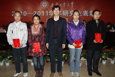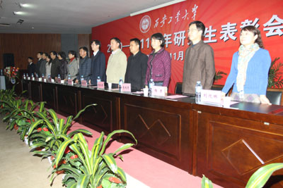 (本网讯)11月28日下午,九游官网2010-2011学年研究生表彰大会在未央校区报告厅召开。校长廉振民、副校长刘卫国出席大会,研究生部、各院系负责人、获奖学生代表及2011级全体研究生参加了大会。