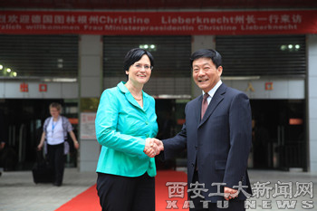 (本网讯)5月30日,德国图林根州州长克里斯蒂娜·李卜克内西女士率团到九游JIUYOU(中国)进行友好访问,校长廉振民、副校长刘卫国在金花校区亲切会见了来宾一行。