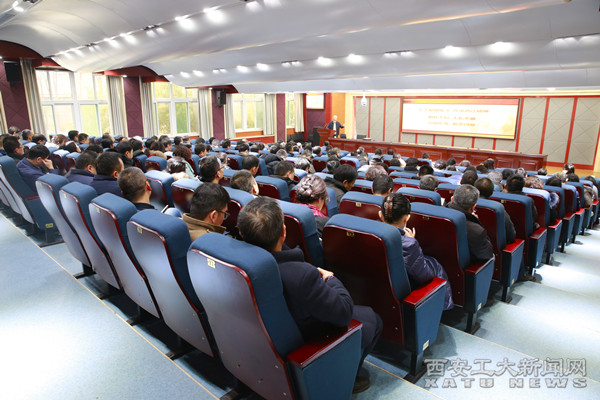 (本网讯)1月10日下午,学校在未央校区学术报告厅召开“弘扬爱国奋斗精神 建功立业新时代”专题报告会,邀请“西迁精神”宣讲团成员贾箭鸣教授作专题辅导报告。报告会由党委委员、纪委书记郑建山主持。
