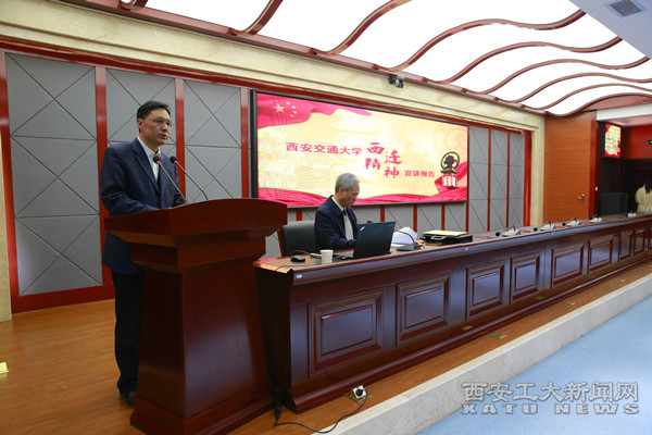 报告会上,贾箭鸣老师从支援西部工业基地建设,创办一批当时国家急需的尖端专业,以适应我国工业化建设迫切需要的西迁背景、历程以及不懈奋斗等几个方面,详细讲述了交通大学内迁西安的历史以及西迁后所做出的巨大贡献,通过丰富的文献资料和生动感人的事例,深刻阐释了西迁精神“胸怀大局、无私奉献、弘扬传统、艰苦创业”的丰富内涵。