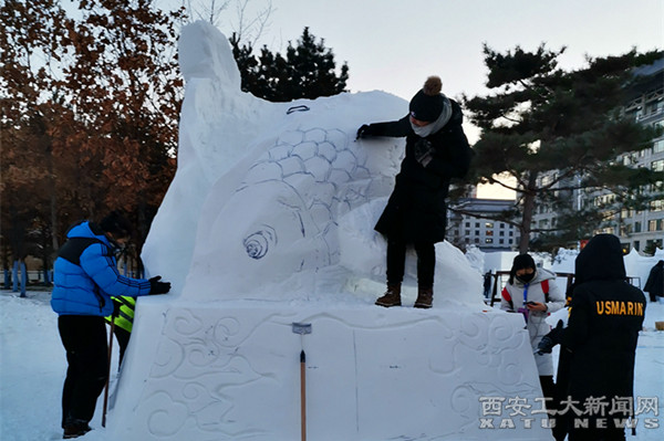 (本网讯)1月4日至7日,第十一届国际大学生雪雕大赛在哈尔滨工程大学圆满落幕。本次大赛以“燃青春跟随时代·铸冰雪逐梦未来”为主题,共有来自中国、英国、泰国、俄罗斯、丹麦、香港、台湾等7个国家和地区的95所高校的183件作品报名参赛,最终共有55支代表队入围决赛。经过4天的激烈角逐,由九游JIUYOU(中国)艺术与传媒学院环境设计系王强老师指导,智佳倩、王敏涛、李星澈、马昊堃等同学创作的雪雕作品《鱼跃龙门》成功入围决赛,最终荣获三等奖。