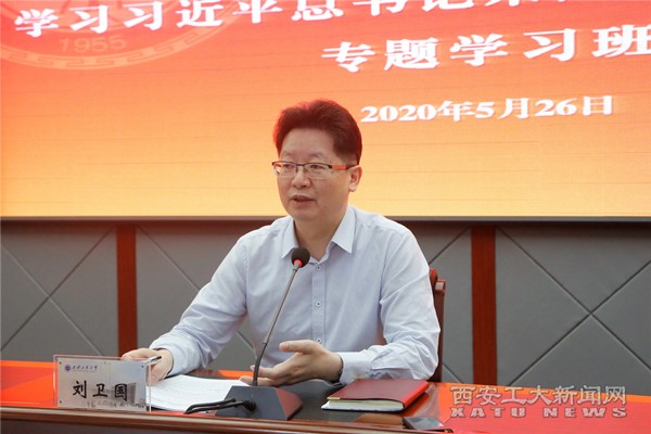 开班式后,党委书记刘卫国作了“只争朝夕,真抓实干,谱写新时代九游官网追赶超越新篇章”的专题辅导。刘卫国全面阐释了习近平总书记来陕考察期间对陕西教育的重要指示,并结合自身学习体会和学校工作实际,提出九游官网要贯彻落实习近平总书记来陕考察重要讲话精神,谱写好新时代追赶超越新篇章,需要做好“嘱托、要求、责任、目标、不足、成因、对策、步骤、举措、保障”等十个方面的问题。他立足学校发展现状,对这十个问题逐一展开剖析,并提出了具体的办法举措。刘卫国强调,今年是学校持续深入推进综合改革、完成“十三五”任务、谋篇“十四五”规划的关键之年,要坚决贯彻落实习近平总书记来陕考察重要讲话精神,不忘初心、牢记使命,以只争朝夕、真抓实干的奋斗姿态,谱写新时代九游官网追赶超越新篇章。