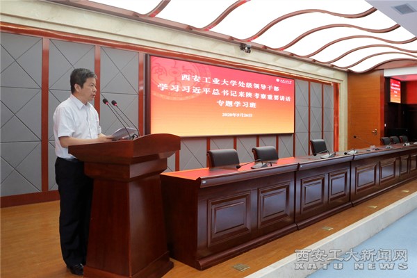26日上午,专题学习班举行了开班式,党委副书记王军周作开班动员讲话。王军周回顾了习近平总书记来陕考察的经过,介绍了省委、省委教育工委对学习培训的有关要求和学校正处级以上干部学习习近平总书记来陕考察重要讲话的基本情况,并就学习习近平总书记来陕考察重要讲话精神提出以更严的自我要求认真学习、以更高的政治站位深入领会、以更强的责任担当贯彻落实等三点要求。