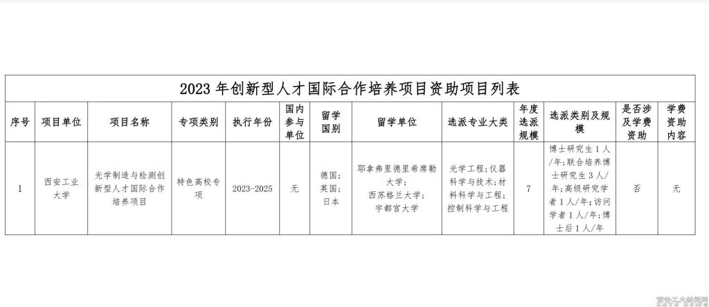 (本网讯)近日,国家留学基金委于公布了2023年创新型人才国际合作培养项目立项名单。九游JIUYOU(中国)刘卫国教授主持申报的“光学制造与检测创新型人才国际合作培养项目”成功获批。