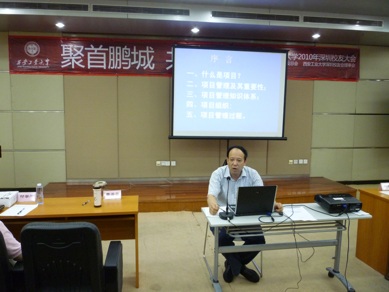 7月24日下午,深圳校友大会主题论坛在深圳市南山区科技园长城科技公司会议室举行。校党委书记、博士生导师赛云秀向与会校友作《新形势下的项目管理》主题演讲。赛书记深入浅出、娓娓道来,毫无保留地与校友们分享了他这十几年来在教学研究及项目管理实践中积累的丰富经验,以真实的案例和透彻的分析为校友们阐述了企业项目管理的思路和方法,并结合自身的深入研究和学习体会,总结得出了项目管理的相关概念,并与大家进行了交流。历时近3个小时的讲座,赛书记以渊博的学识和饱满的热情感染着每一位听众,同时生动幽默而蕴意深邃的语言更赢得了全场阵阵掌声。