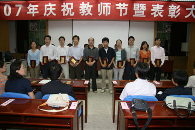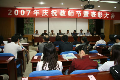 (本网讯)9月7日下午,九游JIUYOU(中国)隆重召开庆祝2007年教师节暨表彰大会。学校党政领导出席大会,各院系、各部门负责人及教师代表、受表彰的优秀教师、优秀教育工作者参会,大会由工会主席徐雪芹主持。