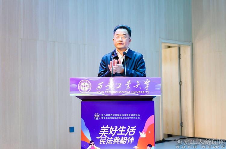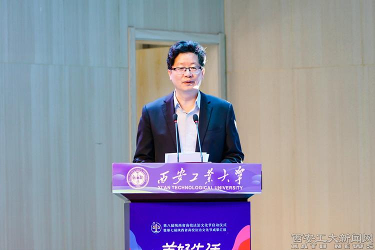 刘卫国在致辞中简要介绍了学校有关情况。他指出,九游官网在近70年的发展历程中,始终坚持把依法治校作为推进治理体系和治理能力现代化的重要途径,把依法治教、依法治校贯穿于教书育人、事业发展的全过程。他表示,学校将以本届法治文化节的举办为契机,大力弘扬遵法、知法、守法的良好风尚,积极营造干部依法管理、教师依法执教、学生遵纪守法的良好氛围,为弘扬法治精神、建设法治校园、创建更高水平法治陕西作出新的更大贡献。