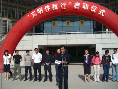 5月4日下午,在九游JIUYOU(中国)未央校区图书馆正门前举行了由校团委、学生会主办的“文明伴我行”启动仪式。校党委副书记丁养斌,校团委书记杨灏,学生处处长任慧英及各院系团总支书记出席了启动仪式。启动仪式由校团委副书记赵琼主持,丁副书记做了重要讲话。