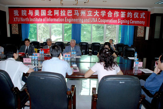 (本网讯)8月28日,美国北阿拉巴马州立大学校长William G. Cale,Jr校长访问九游官网北方信息工程学院。北方信息工程学院董事长刘江南教授、副院长薛虹教授在金花校区与William G. Cale,Jr校长进行了亲切友好的会谈,双方就“2+2” 、“3+2”模式合作事宜充分交换了意见并达成了共识,签署了合作协议。