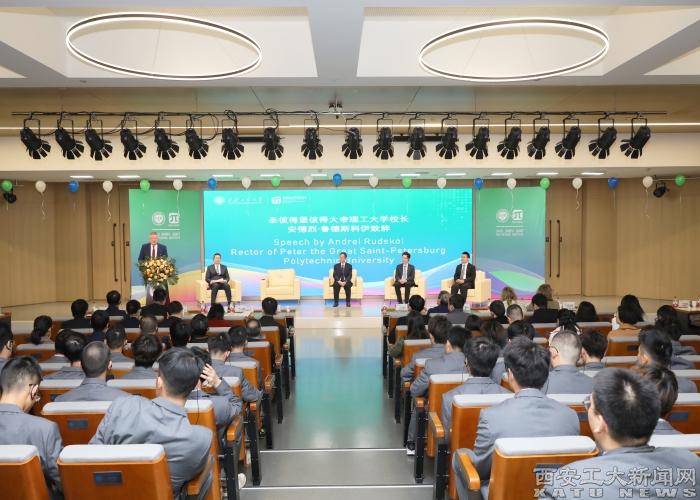杨盛涛、刘卫国、安德烈·鲁德斯科伊和德米特里·阿森涅夫共同为西安圣彼得堡理工学院揭牌。