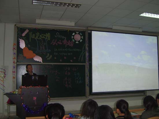 活动共分为两个环节。在第一个环节中,校大学生心理咨询中心林晓萍老师为大家讲解心理健康理论知识。她以水喻人,让同学们首先观赏了心理短片《有感知的水》,启发同学们成为“有感知的人”,充分感知生命的奇迹和人生的美好。她还向同学们讲述了世界上各国著名心理咨询师的格言和人生历程,使到场的每位同学都深有感触、获益匪浅。