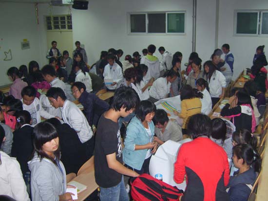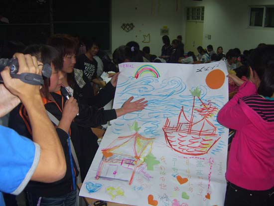 第二个环节是“心有灵犀 编织未来”。 同学们利用手中的彩笔、小刀、双面胶、彩纸、彩带等道具描绘出自己的未来梦想。当一幅幅栩栩如生的画面和手工编织作品展现在大家面前的时候,同学都为之热血沸腾和欣喜庆贺,在这一刻,大家都清楚地感觉到:梦想离自己只有一步之遥,只要自己继续努力,一定会梦想成真!