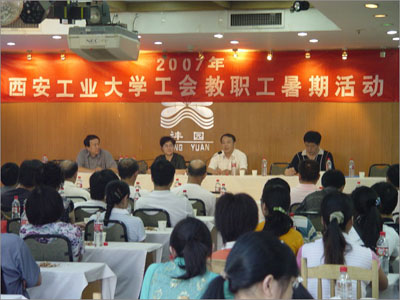14日上午,大家观看了介绍学校历史和发展的短片。副校长张君安向教职工介绍了学校近年整体工作情况。他说,学校这几年每年迈出一大步,经历了扩招、新校区建设、学校更名、教学评估,全校上下付出了艰辛的努力。他代表学校向教职工表示感谢,并就学校评建工作情况及整改工作要求,向教职工做了说明。他说,大家辛苦了一年,校工会组织的这项传统活动,为大家创造了度假休闲的好机会,希望大家在这两天中相互交流,认真接受培训,好好休息娱乐。