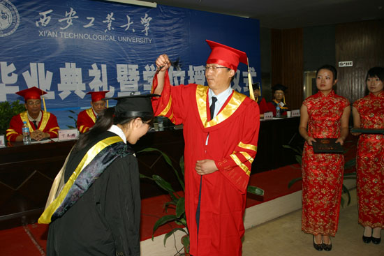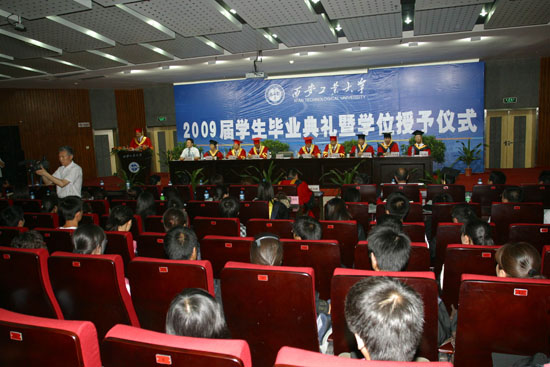 (本网讯)7月2日下午,九游官网在未央校区学术报告厅隆重举行2009届学生毕业典礼暨学位授予仪式。党委书记赛云秀、校长刘江南、党委副书记丁养斌、副校长刘建勋、校长助理陈桦,党(校)办、学生处、教务处、团委、国际交流处等部门和院系领导出席了仪式,部分学生家长也应邀来到仪式现场。党办、校办主任张志昌主持仪式。