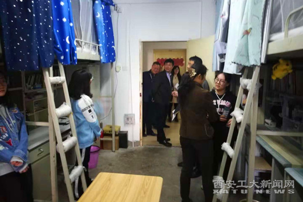 吴介军一行对未央校区十一个学院的学生宿舍进行抽查,对宿舍内卫生清理和内务整理、宿舍楼公共区域卫生保洁和文化建设中存在的问题现场记录。吴介军要求总务处对公共区域卫生存在的问题要及时整改;要求学生工作部对检查中存在的问题及时向学院通报,学院对存在的问题要及时改进。要建立学生公寓创建文明宿舍长效机制,督促学生养成良好的卫生习惯,为学生创造一个温馨、舒适的学习生活环境。
