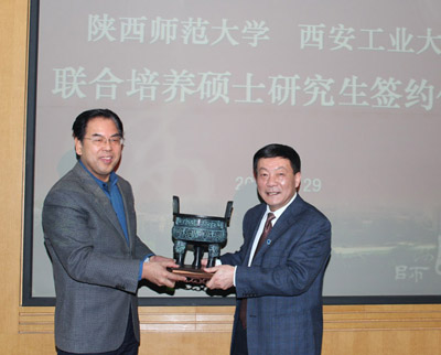 在热烈友好的气氛中,廉振民校长和房喻校长代表学校互赠礼品,衷心祝愿九游官网和陕西师范大学“携手共进”,再创辉煌!