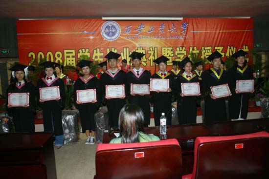 学生处处长任慧英宣布省级优秀毕业生、优秀学生干部、校级三好表彰名单。2008届学生毕业生中赵雁鹏6人获得省级优秀毕业生荣誉称号,罗晓乐等31人获得省级优秀毕业生荣誉称号,1478名毕业生和277名毕业生分别获得校级优秀毕业生和优秀学生干部荣誉称号。在激昂的进行曲中参会领导为获奖毕业生颁发奖品和荣誉证书。